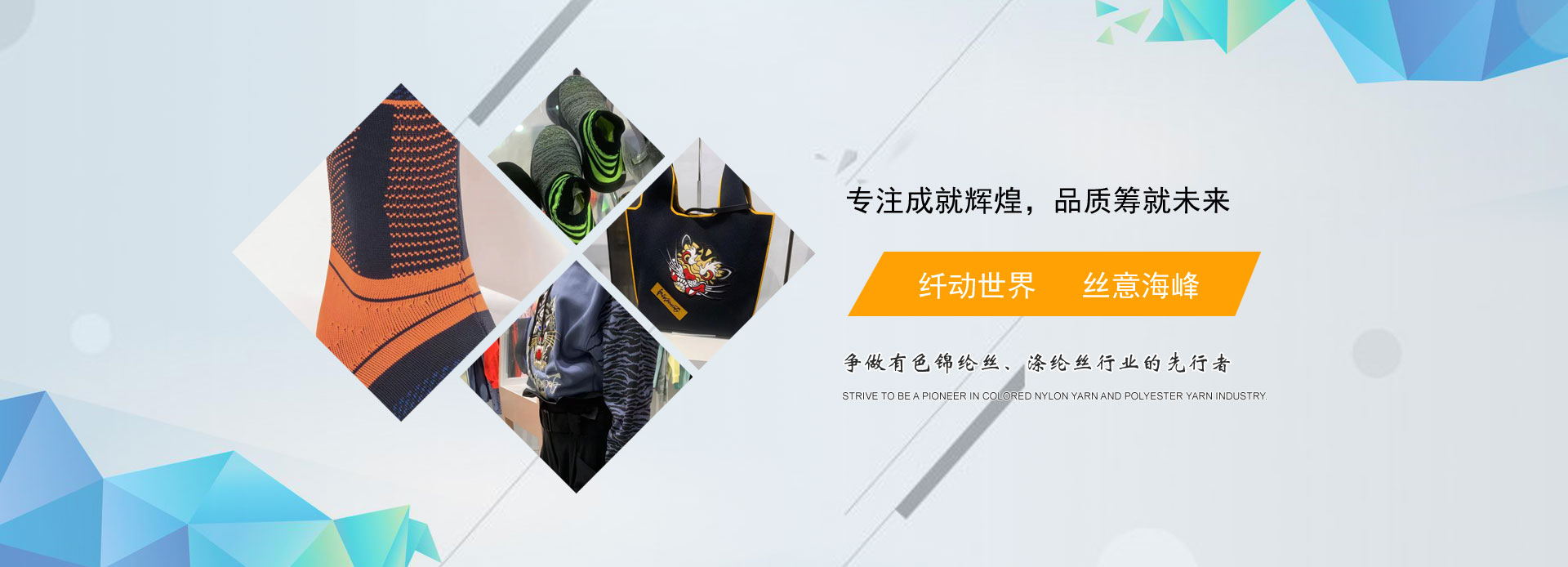 我公司是專業(yè)從事生產錦綸絲、滌綸絲的企業(yè)。公司產品規(guī)格色樣齊全,可根據coloro、pantone、avilas色卡定制。年產高品質錦綸彈力絲、滌綸彈力絲3000余噸。海峰人秉承著“團結、拼搏、創(chuàng)新、發(fā)展”的企業(yè)精神,公司堅持以技術為依托,以市場為動力,不斷加強新產品和新工藝的創(chuàng)新和應用,不懈提高的技術 和完善的服務體系,在國內市場中享有較高的聲譽,深受國內外廣大客戶的好評。